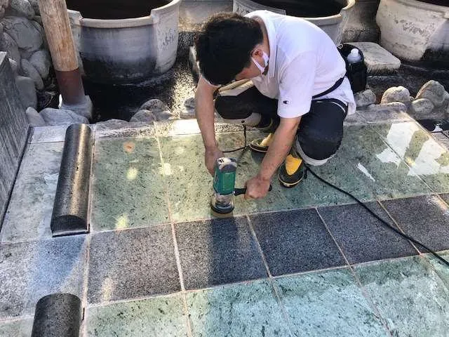 温浴施設専業の環境衛生支援事業として、山梨近隣の関係施設様にサービスをご提供しています。カガミやガラスのウロコ除去、床の防滑処理、ヘリや立ち上がりについたエフロおよびスケールの除去など、温浴施設の衛生に関するお困りごとは何でもご相談いただけます。「ガラスのウロコ被膜がどうしてもきれいにできない」「床のヌメリが酷く、転倒事故のリスクを心配している」といったお悩みに迅速に対応します。
